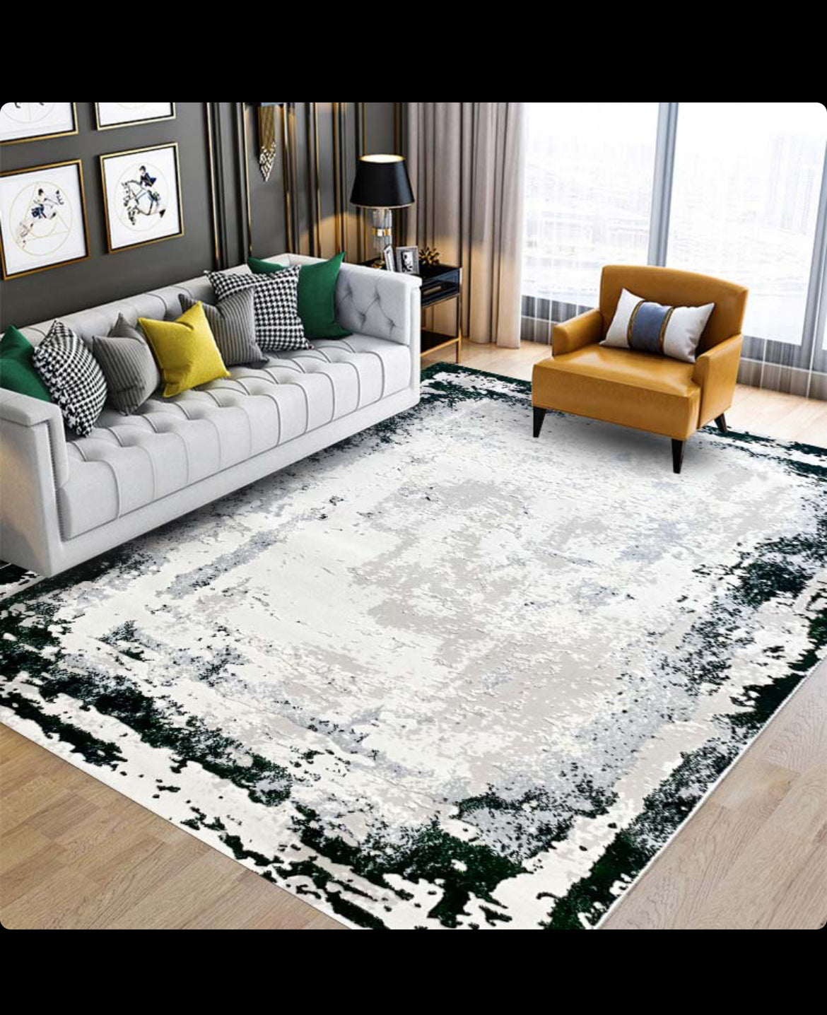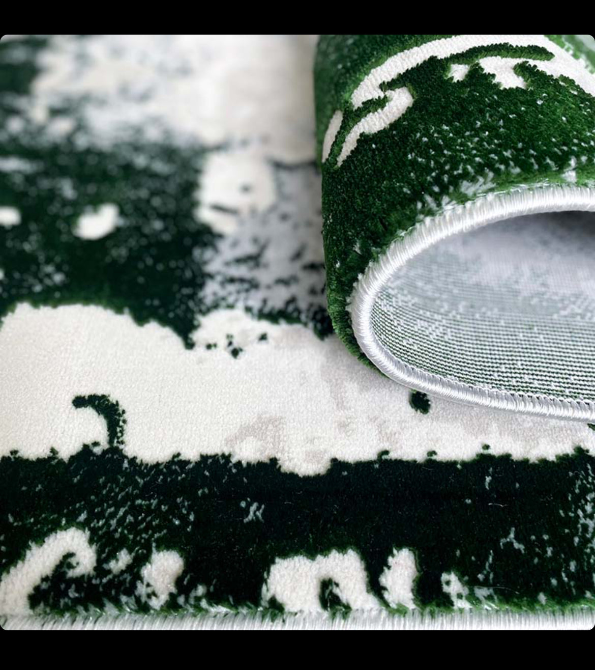 Transformă-ți spațiul de locuit cu acest covor modern, cu design abstract și nuanțe sofisticate de verde smarald.